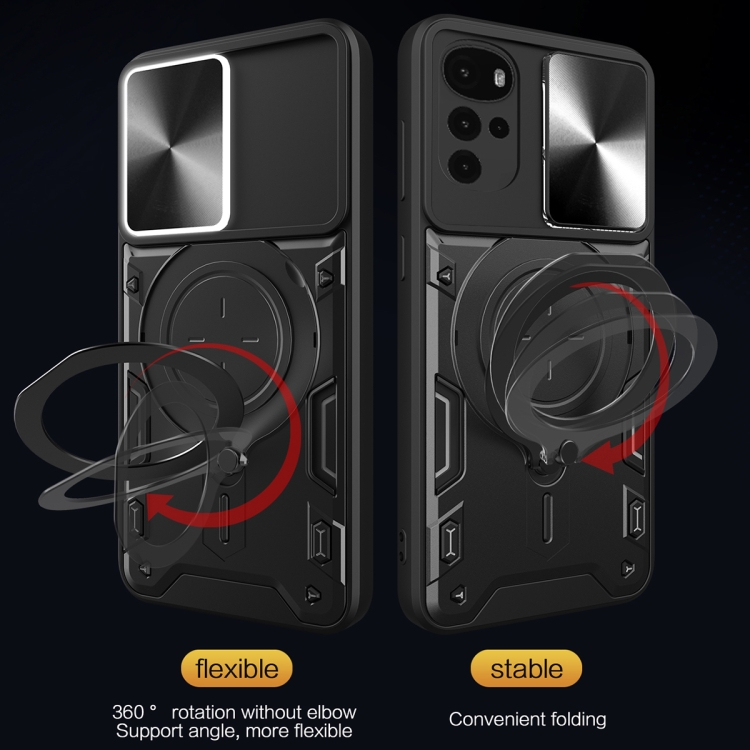 - 1x Funda para Motorola Moto G22 / E32 con Textura Deslizante Camshield y Soporte Magnético (Negro)