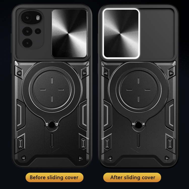 La Funda para Motorola Moto G22 / E32 con textura deslizante Camshield y Soporte magnético en color Negro está diseñada para ofrecer una protección integral y funcionalidad avanzada a estos modelos específicos. Fabricada con materiales de alta resistencia como TPU y PC, esta Carcasa combina durabilidad y Flexibilidad para proteger el dispositivo contra rayones, suciedad, desgastes y golpes cotidianos. Su característica Principal es el diseño de Cubierta deslizante que protege la Lente de la Cámara, evitando daños y manteniendo la calidad Óptica. Además, incorpora un Soporte magnético que facilita el uso manos libres y la fijación en superficies compatibles, sin interferir con el acceso a Botones y Puertos, que permanecen totalmente accesibles y operativos.