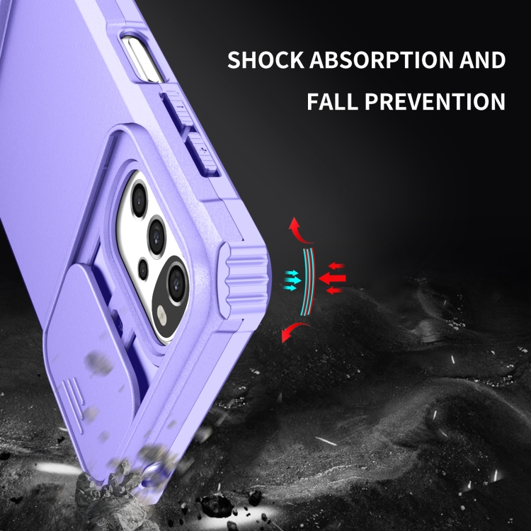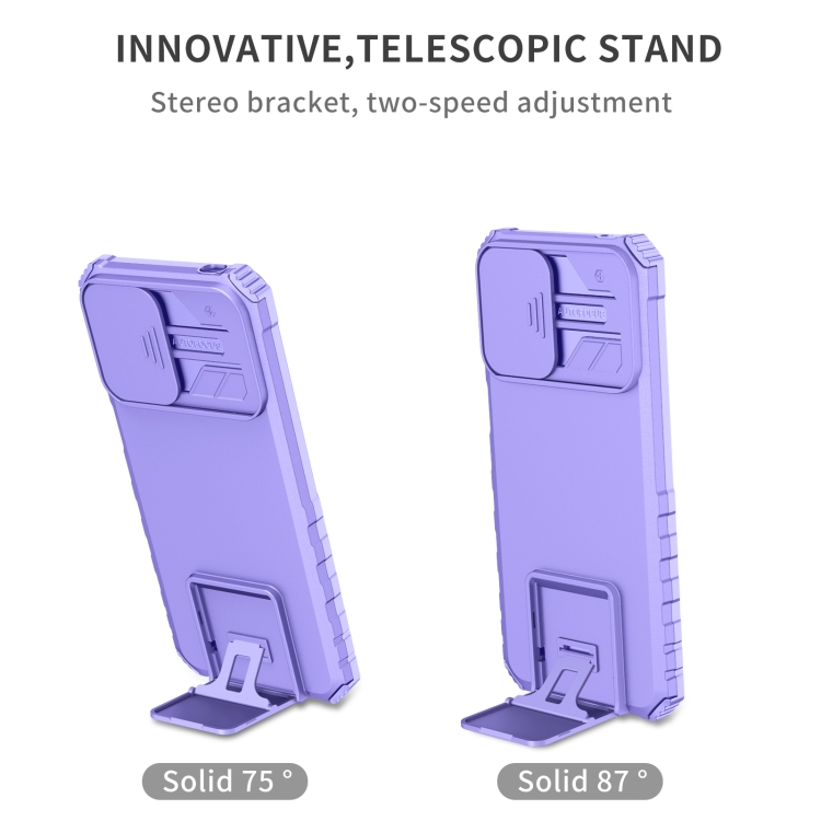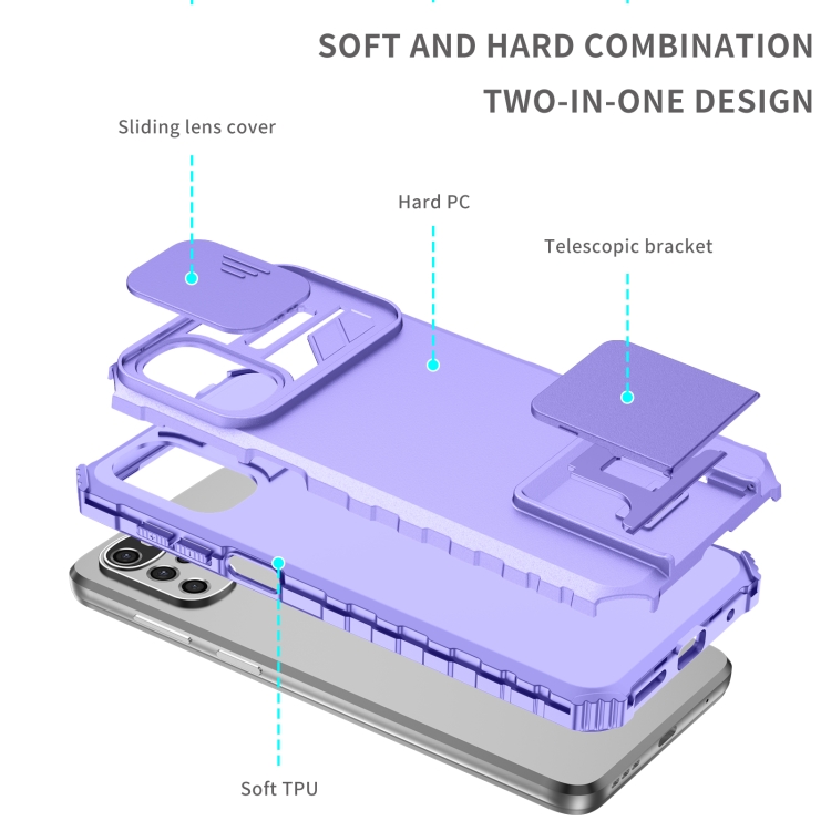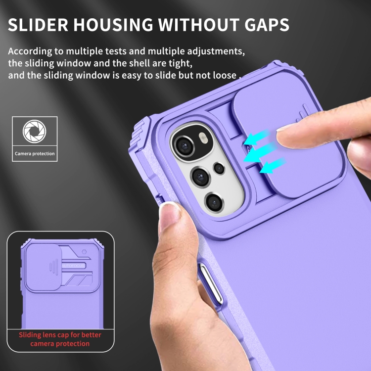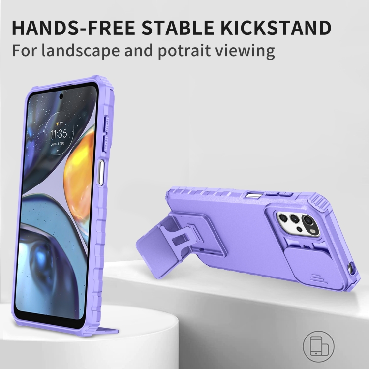 - 1x Soporte Estereoscópico Deslizante Camshield Funda para Motorola Moto G22 / E32 (Púrpura)