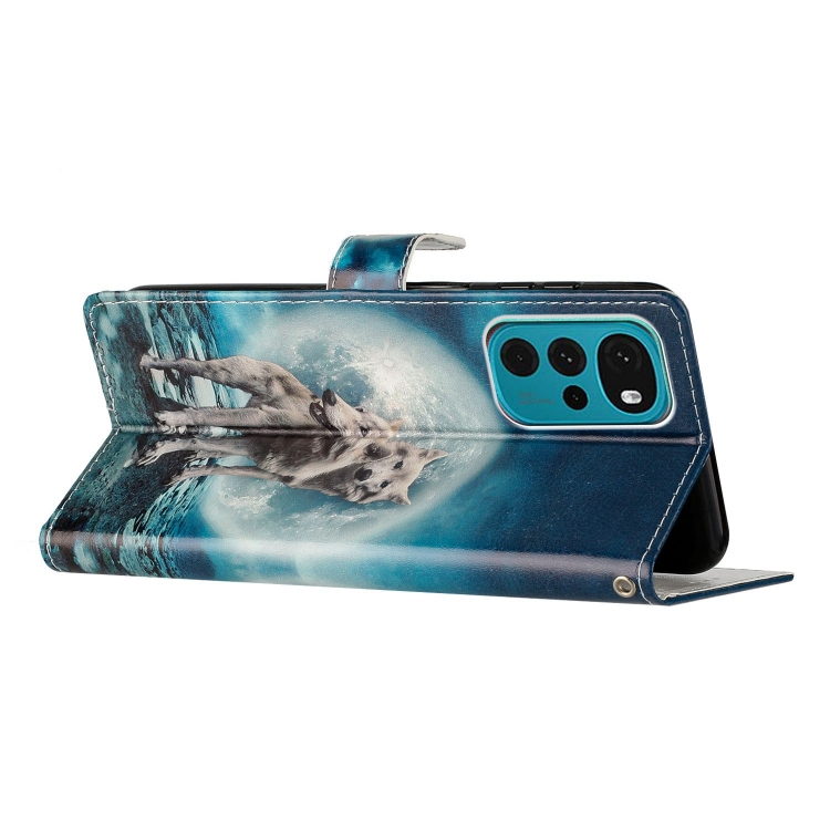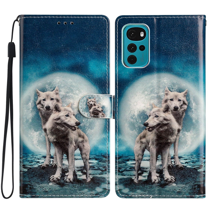 - 1x Estuche de Cuero para Motorola Moto G22 con Dibujo Coloreado Lobos Gemelos