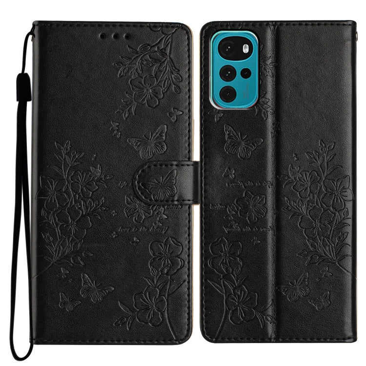 Funda de Cuero para Motorola Moto G22 con Mariposas y Flores (Negro)