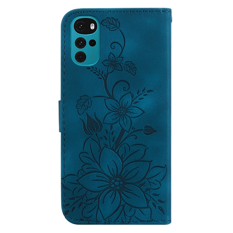 - 1x Funda para Motorola Moto G22 Lily de Cuero en Relieve (Azul Oscuro)