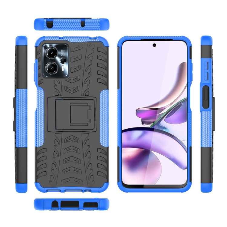 Funda para Motorola Moto G23 Tire Texture TPU + PC con Soporte (Azul)