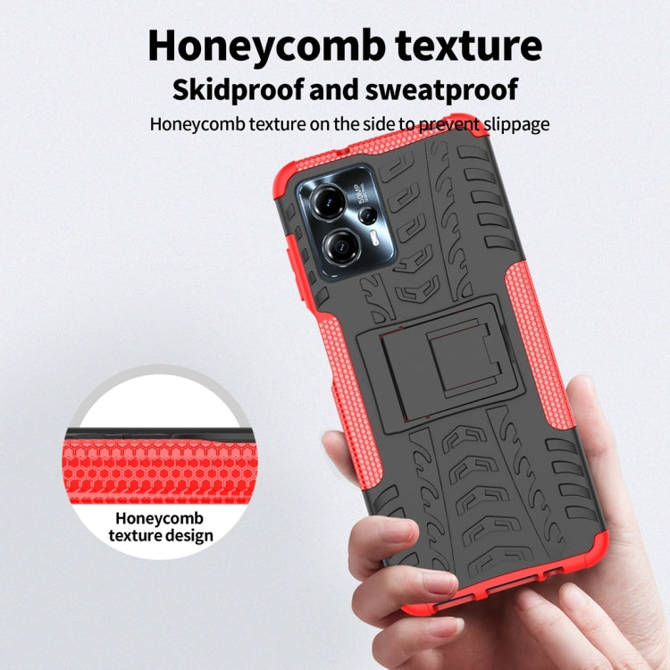 Funda para Motorola Moto G23 Tire Texture TPU + PC con Soporte (Rojo)