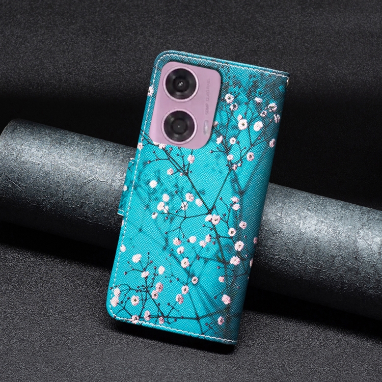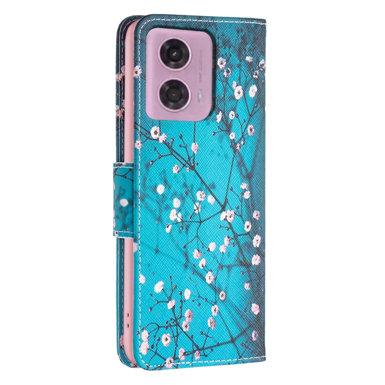 Funda de Cuero para Motorola Moto G24 con Patrón de Dibujo de Colores (Flor de Ciruelo)