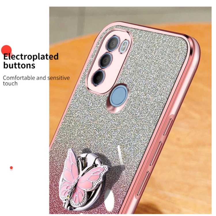 Funda para Motorola Moto G31 TPU con Soporte de Mariposa y Brillo Degradado (Púrpura)