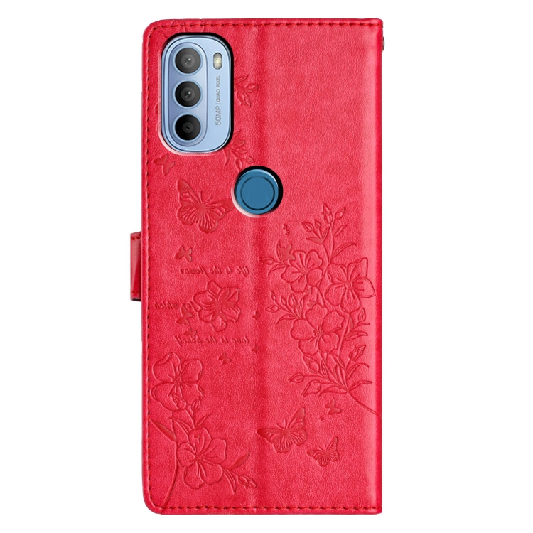 Funda de Cuero para Motorola Moto G31 y G41 con Mariposas y Flores (Rojo)