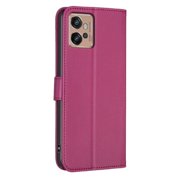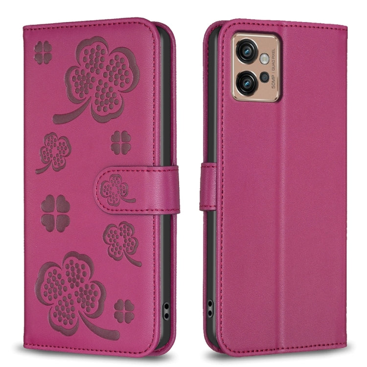 Funda de Cuero para Motorola Moto G32 4G con Relieve de Cuatro Hojas (Rojo Rosa)