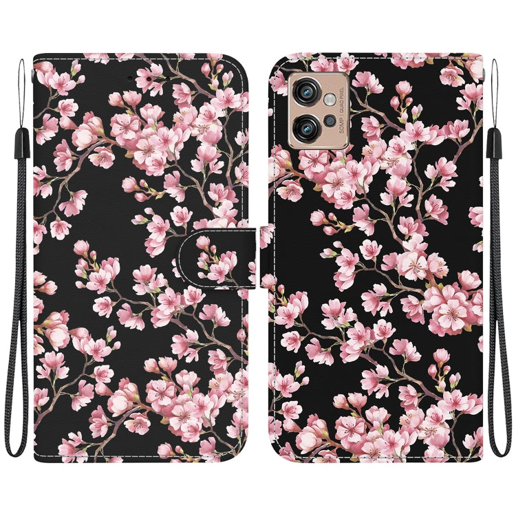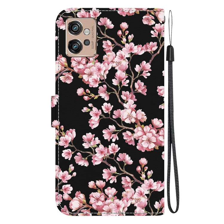 Funda de Cuero para Motorola Moto G32 con Dibujo Coloreado y Textura de Cristal (Flor de Ciruelo)