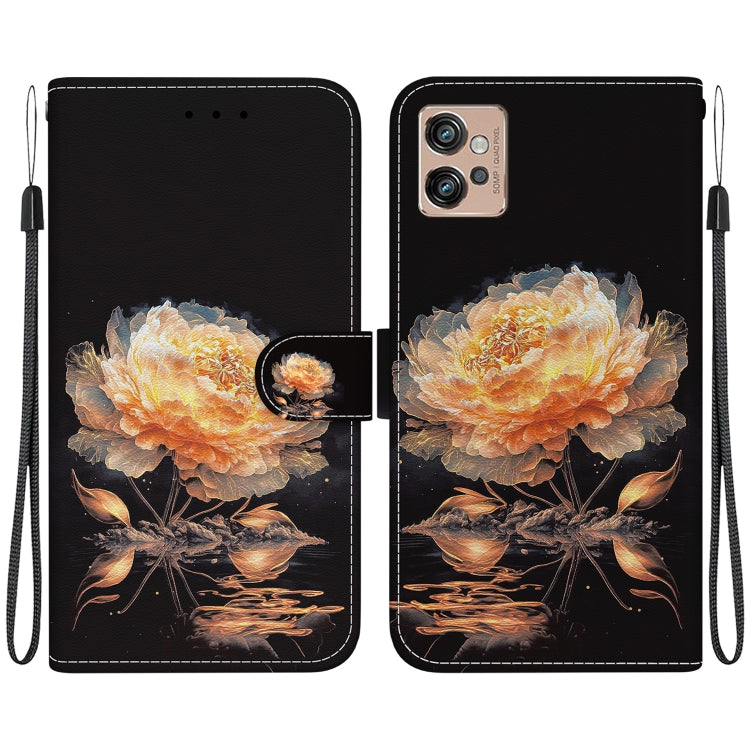 Funda de Cuero para Motorola Moto G32 con Dibujo Coloreado y Textura de Cristal (Peonía Dorada)