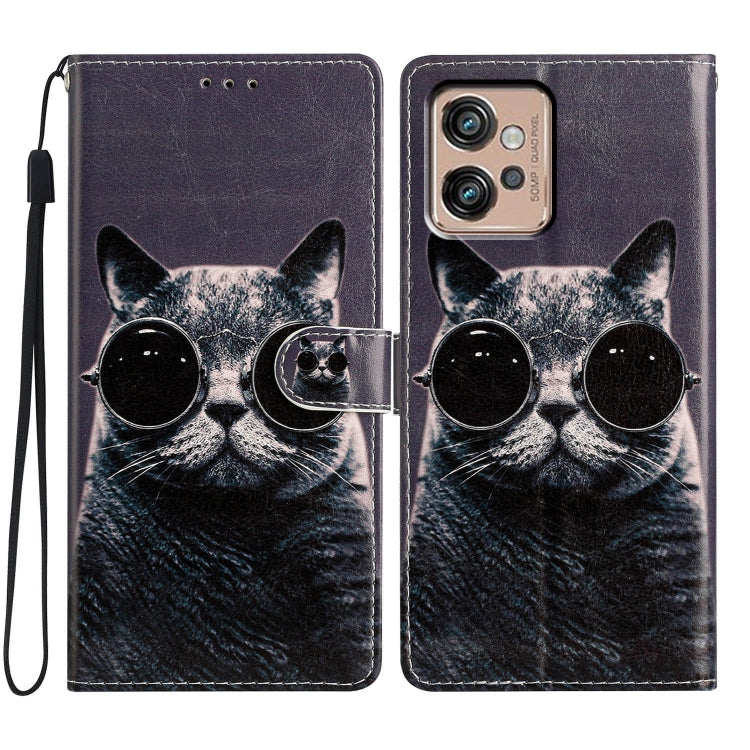 Funda de Cuero para Motorola Moto G32 con Dibujo Coloreado Gato de Gafas de Sol