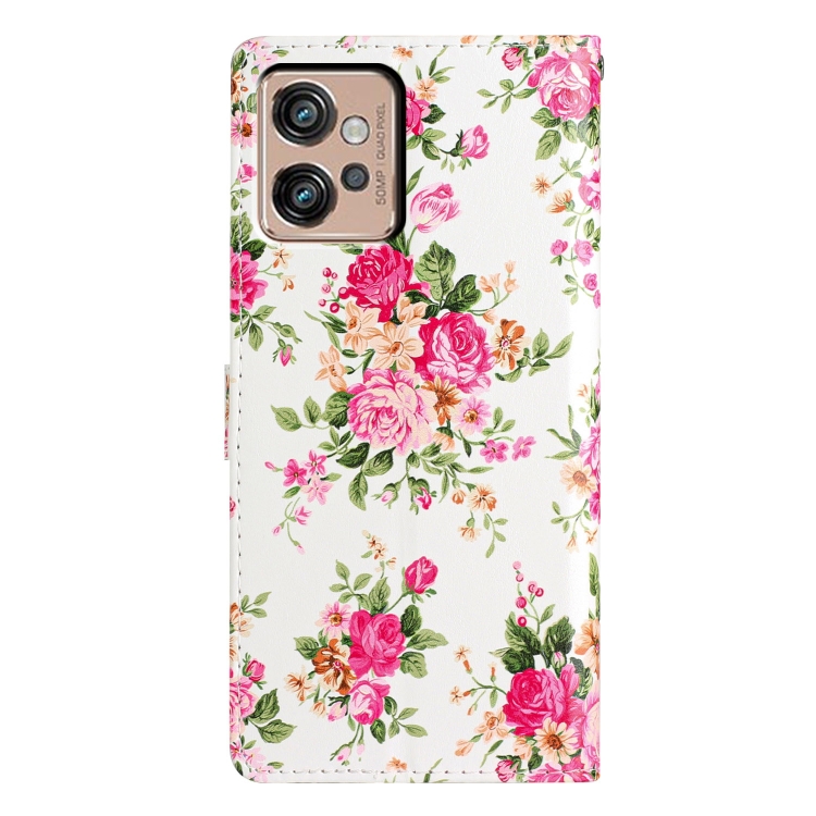 Funda de Cuero para Motorola Moto G32 con Dibujo Coloreado Peonías