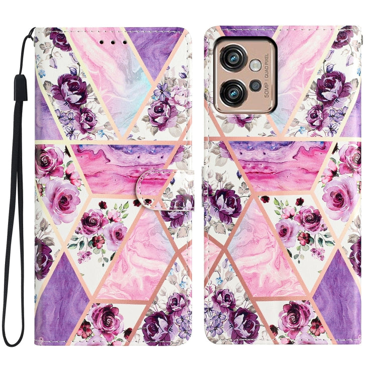 Funda de Cuero para Motorola Moto G32 con Dibujo Coloreado Mármol (Morado)