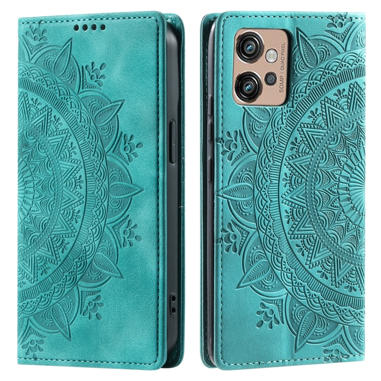 Funda de Cuero Magnética Totem para Motorola Moto G32 en Relieve (Verde)