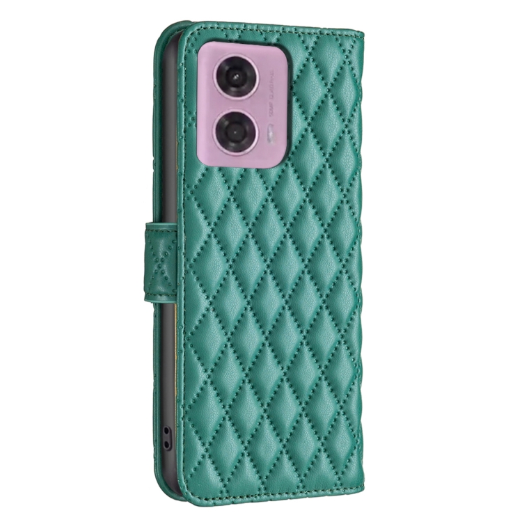 Funda de Cuero con Tapa para Motorola Moto G34 5G Diamond Lattice (Verde)
