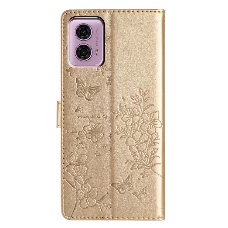 Funda de Cuero para Motorola Moto G34 con Mariposas y Flores (Dorado)