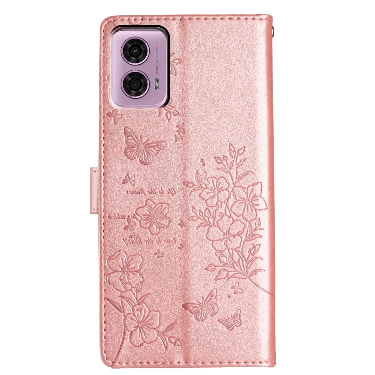 Funda de Cuero para Motorola Moto G34 con Mariposas y Flores (Oro Rosa)
