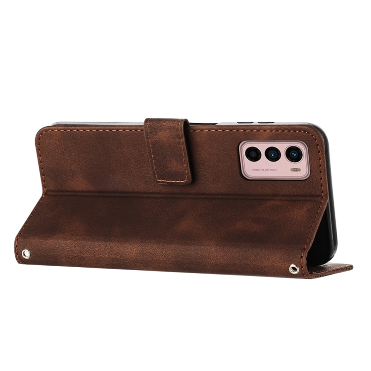 Funda de Cuero para Motorola Moto G42 Dream Triangle con Cordón (Marrón)