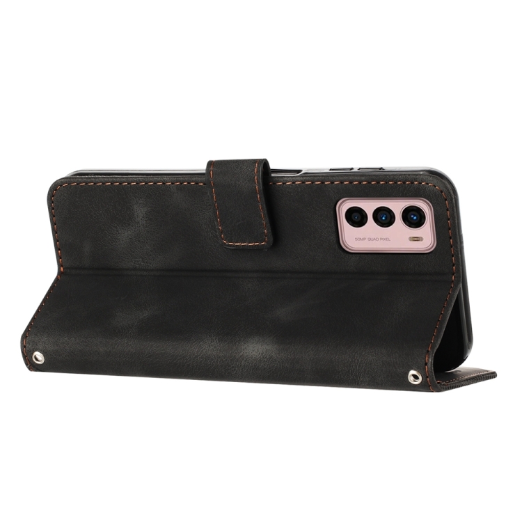 Funda de Cuero para Motorola Moto G42 Dream Triangle con Cordón (Negro)