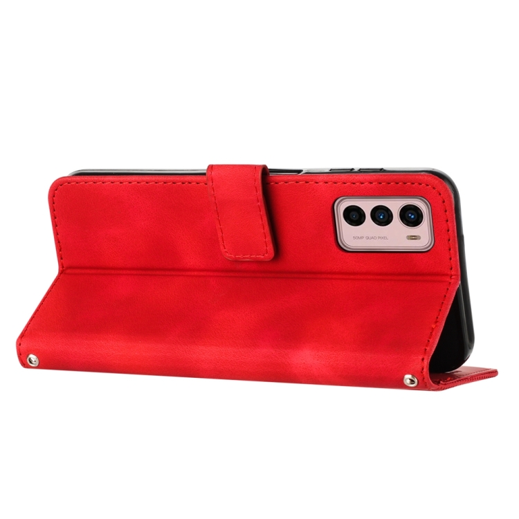 Funda de Cuero para Motorola Moto G42 Dream Triangle con Cordón (Rojo)