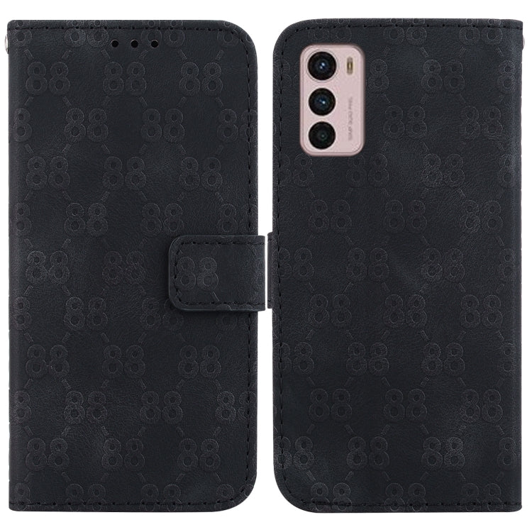 Estuche para Motorola Moto G42 de Cuero en Relieve con Doble Forma de 8 (Negro)