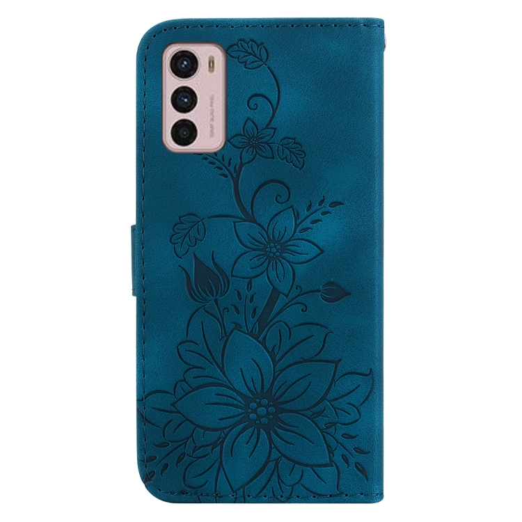 - 1x Funda de Cuero con Relieve Lily para Motorola Moto G42 (Azul Oscuro)