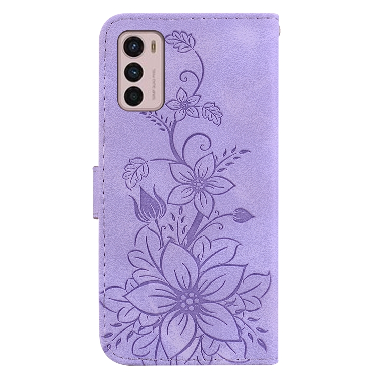 - 1x Funda de Cuero con Relieve Lily para Motorola Moto G42 (Púrpura)