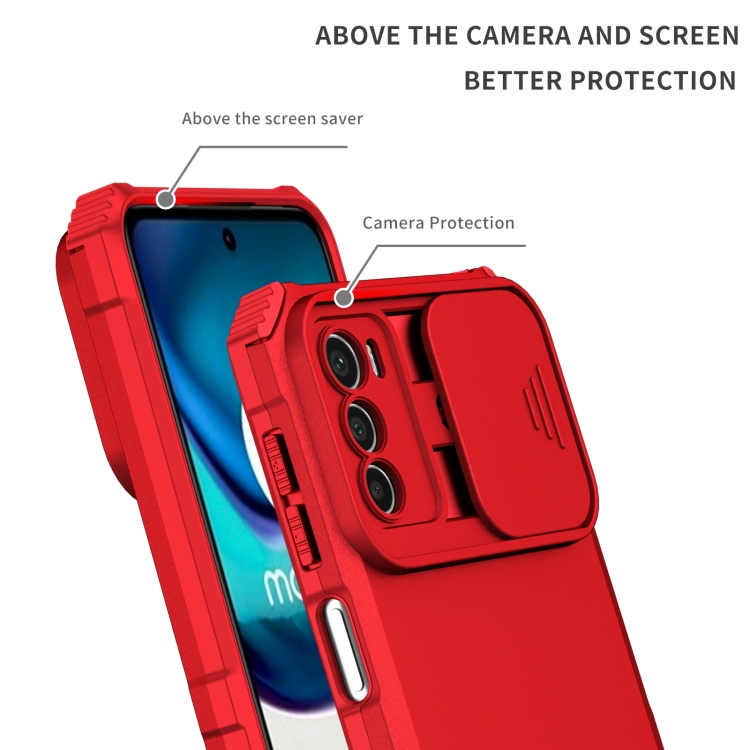- 1x Funda para Motorola Moto G42 con Soporte estereoscópico deslizante y Camshield (Rojo)