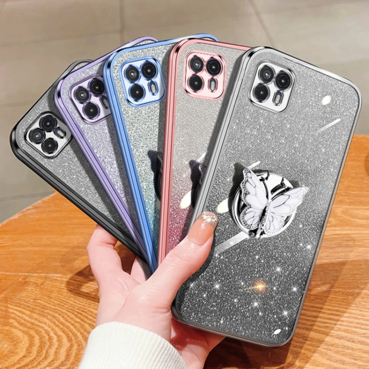 Funda TPU para Motorola Moto G50 5G con Soporte de Mariposa y Brillo Degradado (Negro)