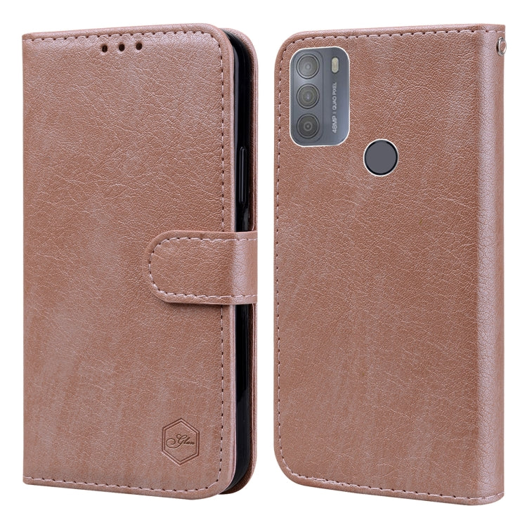Funda para Motorola Moto G50 con Sensación de Piel Textura de Cuero Aceitoso PU + TPU (Champán)
