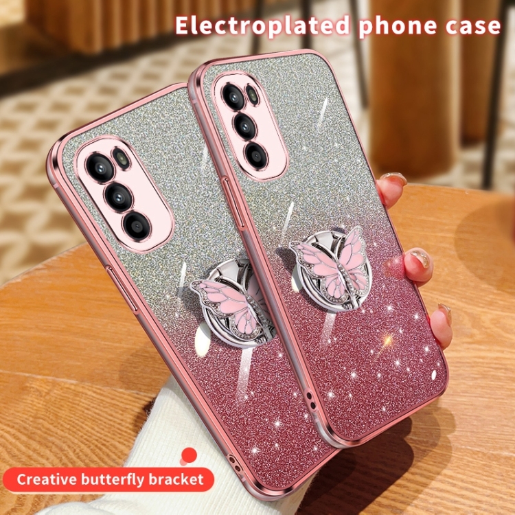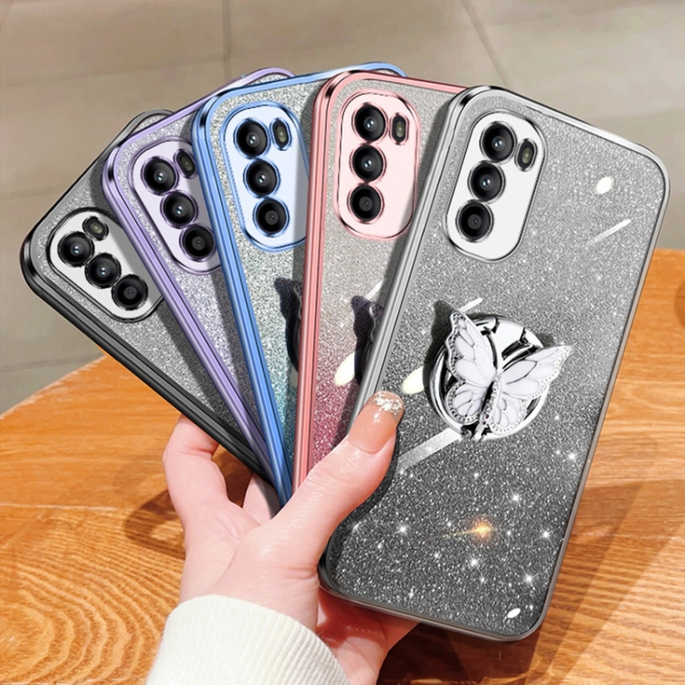 Funda para Motorola Moto G52 TPU con Soporte Mariposa y Brillo Degradado (Púrpura)