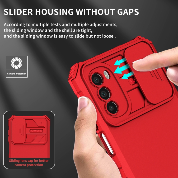 - 1x Funda para Motorola Moto G52 con Soporte Estereoscópico y Camshield Deslizante (Rojo)