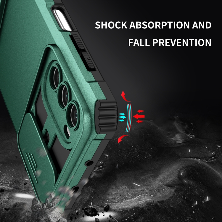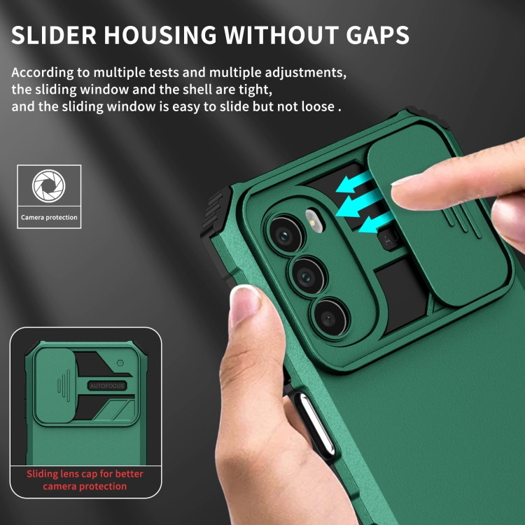 La Funda para Motorola Moto G52 con Soporte estereoscópico deslizante y Camshield en color Verde está diseñada para ofrecer una protección integral y funcionalidad avanzada a este modelo de Teléfono. Fabricada en una combinación resistente de PC y TPU, esta Funda protege el dispositivo contra raspaduras, suciedad, rasgaduras y abrasiones Habituales, asegurando durabilidad y resistencia al desgaste. Su diseño incluye un Soporte estereoscópico que permite visualizar contenido multimedia desde diferentes ángulos, mejorando la experiencia de uso. Además, incorpora una Cubierta deslizante que protege la Lente de la Cámara contra rayones, manteniendo la calidad de las fotografías. Todos los Botones y Puertos permanecen accesibles para un uso cómodo y sin restricciones.
