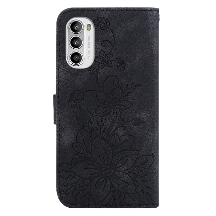 - 1x Funda de Teléfono Motorola Moto G52J Versión JP Cuero con Relieve Lily (Negro)