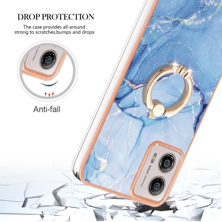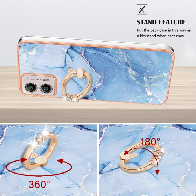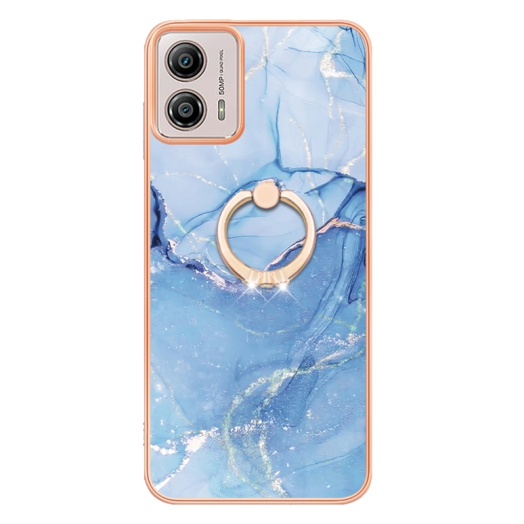 - 1x Funda para Motorola Moto G53 5G IMD doble cara Mármol Galvanoplastia con anillo (Azul)