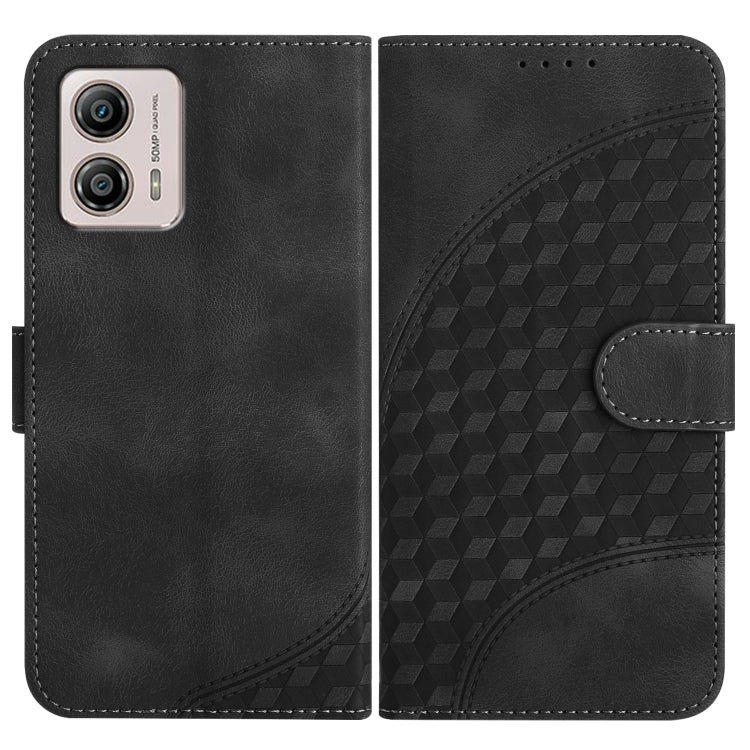 Funda de Cuero para Motorola Moto G53 5G G13 G23 Yx0060 con Relieve y Cabeza de Elefante con Cordón (Negro)