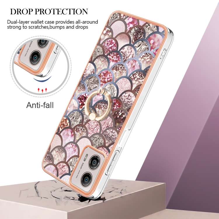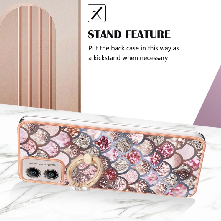 - 1x Funda TPU con Anillo para Motorola Moto G53 5G Galvanoplastia Imd (Escamas Rosas)
