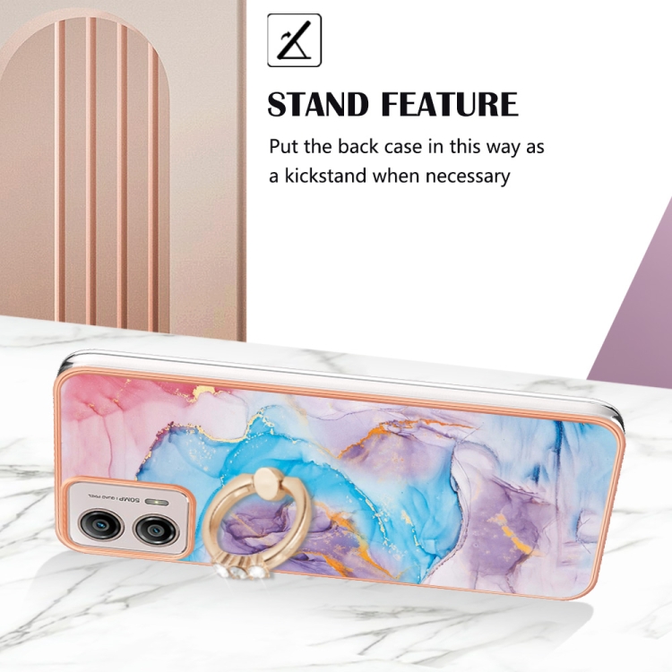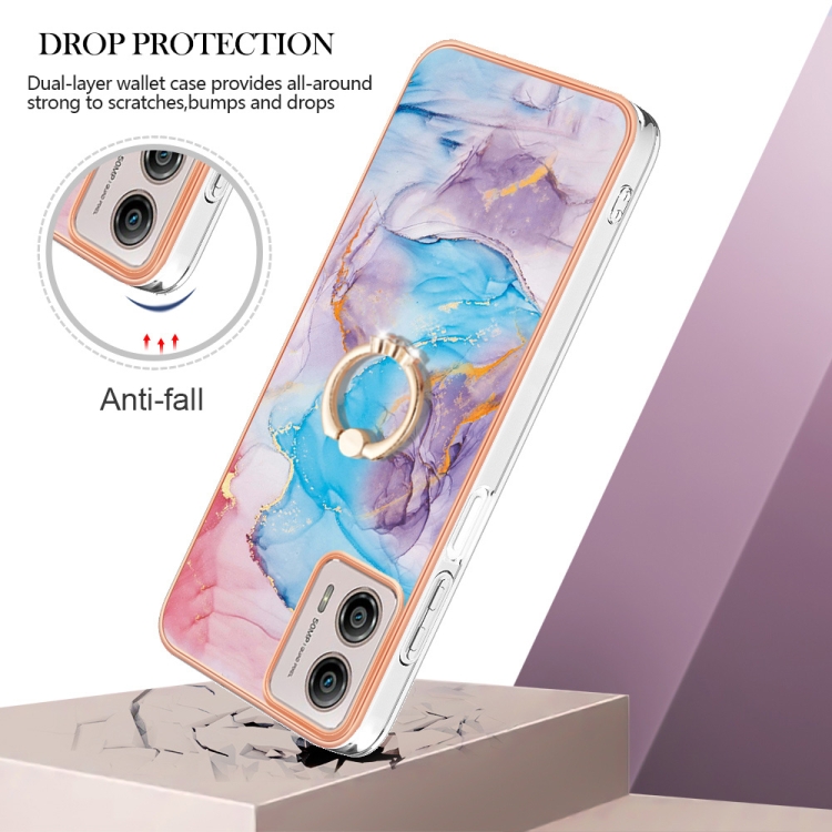 - 1x Funda TPU Galvanoplastia IMD con Anillo para Motorola Moto G53 5G (Mármol Azul)