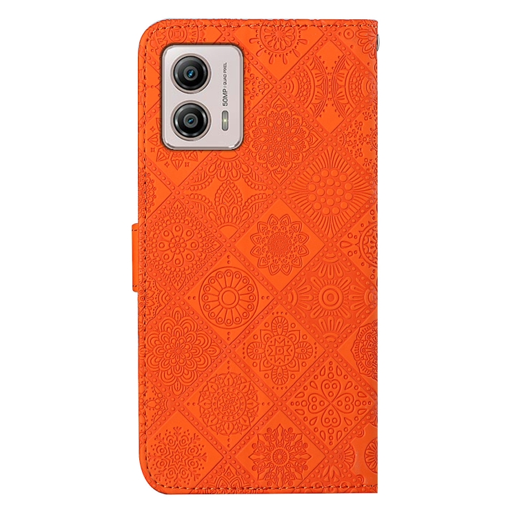 Funda para Motorola Moto G53 de Cuero con Patrón en Relieve Estilo Étnico (Naranja)