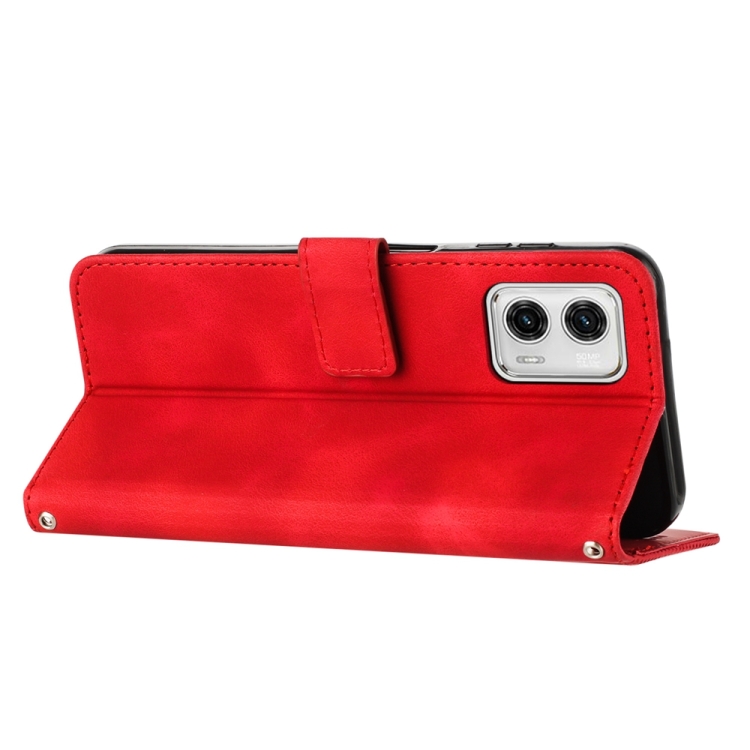 La Funda de Cuero para Motorola Moto G53 y G13 modelo Dream Triangle con cordón en color Rojo está diseñada para ofrecer una protección integral y funcionalidad avanzada para estos dispositivos. Fabricada con materiales combinados de PU y TPU, esta Funda protege eficazmente el Teléfono contra arañazos, suciedad y el desgaste habitual, manteniendo el dispositivo en óptimas condiciones. Su diseño incorpora un Soporte integrado que facilita la visualización horizontal, ideal para reproducir contenido multimedia con comodidad. Además, cuenta con ranuras para Tarjetas y un compartimento para efectivo, proporcionando una solución práctica para llevar lo esencial sin necesidad de Accesorios Adicionales. Todos los Puertos y Botones permanecen accesibles sin necesidad de retirar la Funda, garantizando un uso cómodo y continuo. El cordón de mensajero incorporado permite transportar el dispositivo de manera segura y cómoda, adaptándose a las necesidades de usuarios que reparan por cuenta propia o buscan una protección robusta y funcional para su Motorola Moto G53 o G13.