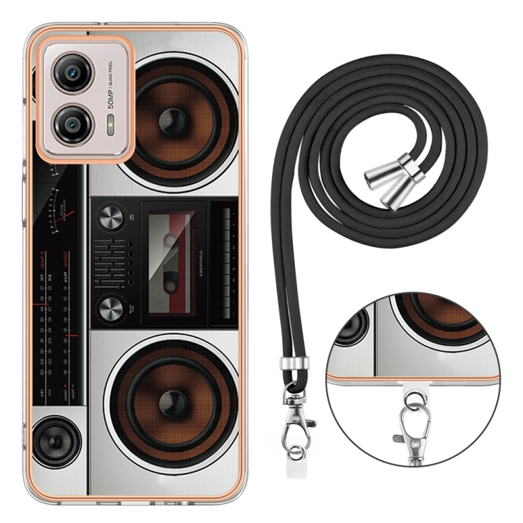 Estuche para Motorola Moto G53 G13 G23 Imd Doble Cara con Galvanoplastia y Cordón (Radio Retro)