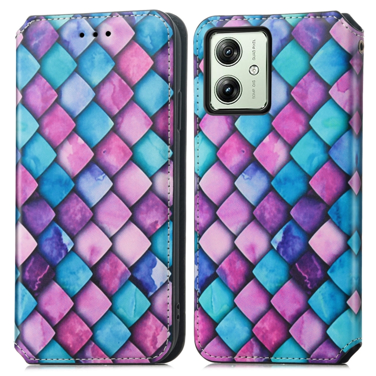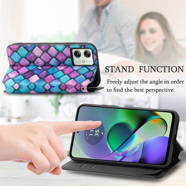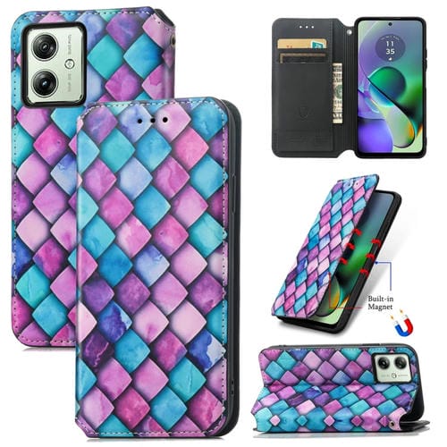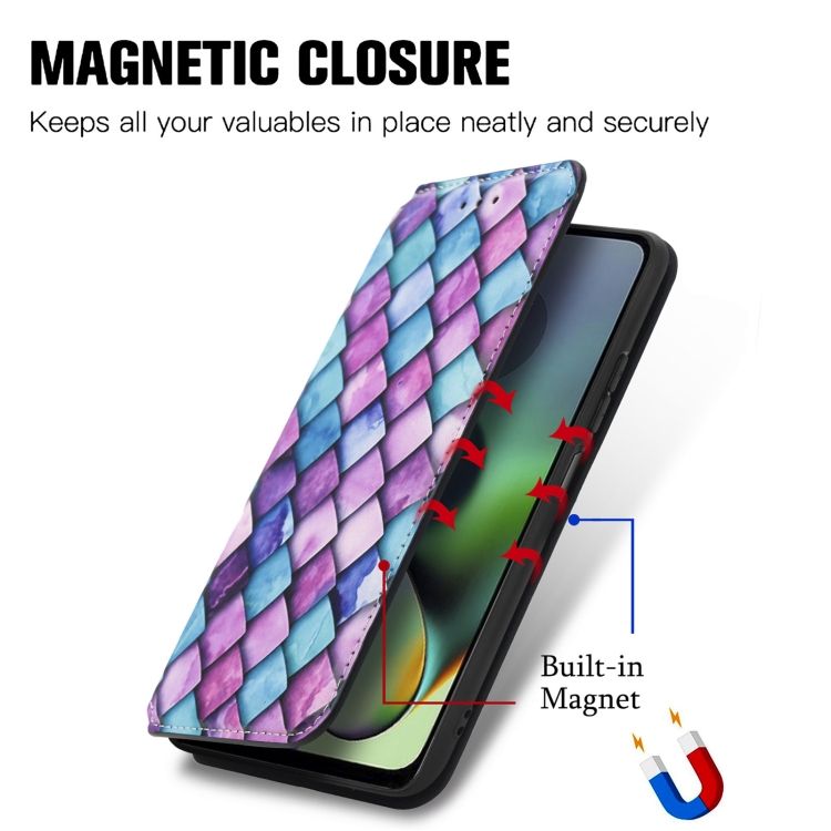 Funda de Cuero Magnética Caseneo para Motorola Moto G54 5G (Escamas Moradas)