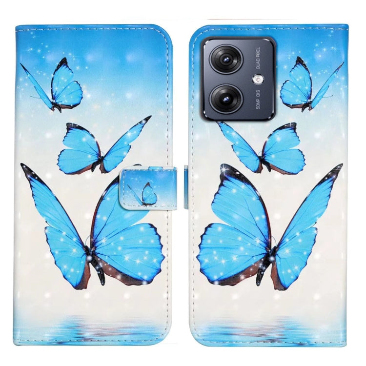 Funda de Cuero para Motorola Moto G54 5G con Dibujo 3D en Relieve al Óleo (3 Mariposas)