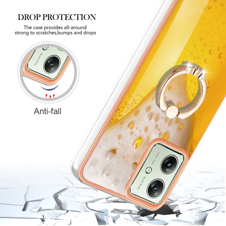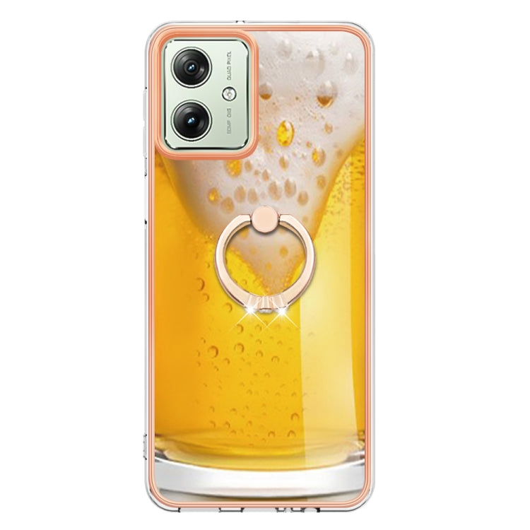 Estuche para Motorola Moto G54 IMD Doble Cara con Galvanoplastia y Soporte para Anillo (Cerveza de Barril)