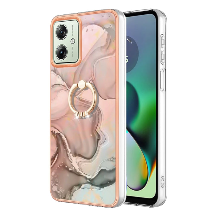 Estuche para Motorola Moto G54 Imd Doble Cara Mármol Galvanizado con Anillo (Oro Rosa)