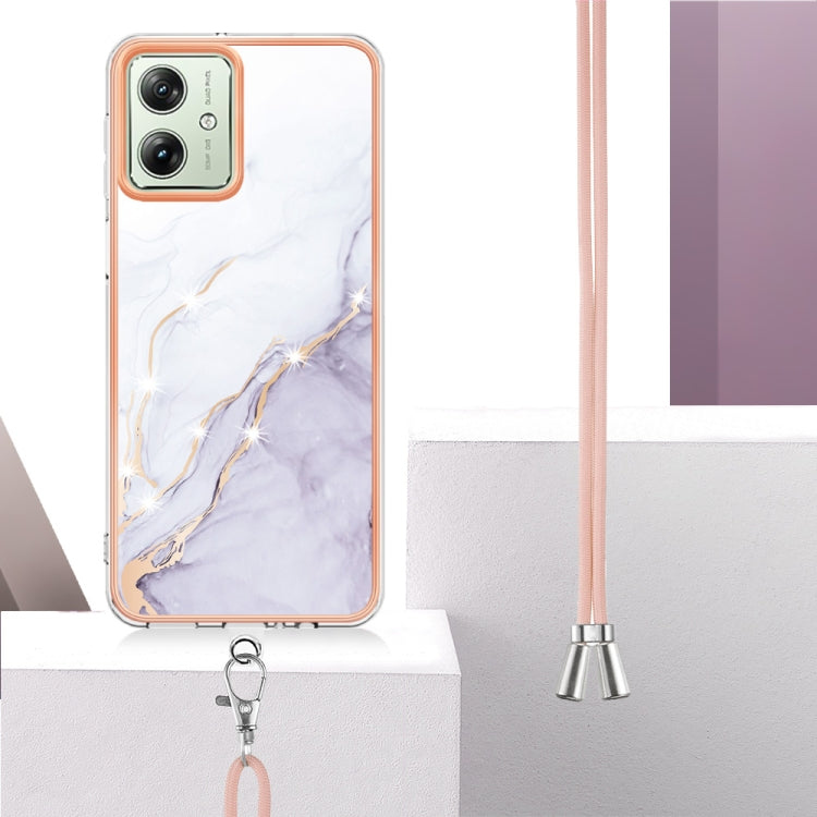 Estuche para Motorola Moto G54 IMD Doble Cara Mármol Galvanizado con Cordón (Blanco)