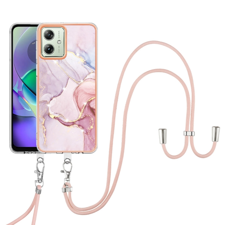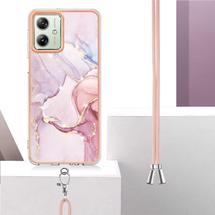 Estuche para Motorola Moto G54 Imd Doble Cara Mármol Galvanizado con Cordón (Oro Rosa)