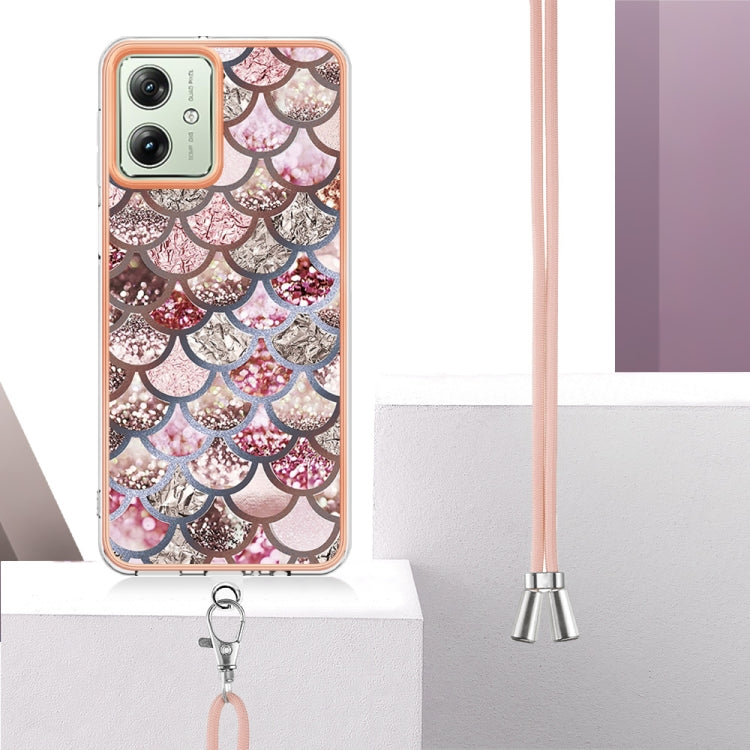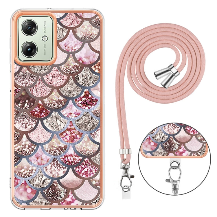 Estuche para Motorola Moto G54 TPU Imd con Galvanoplastia y Cordón (Escamas Rosadas)