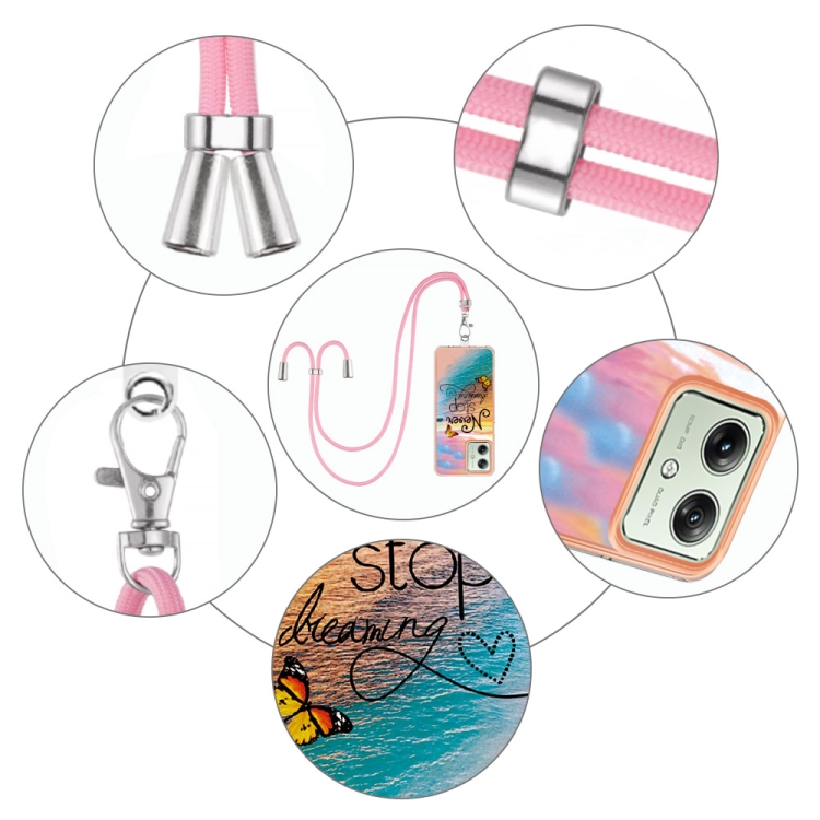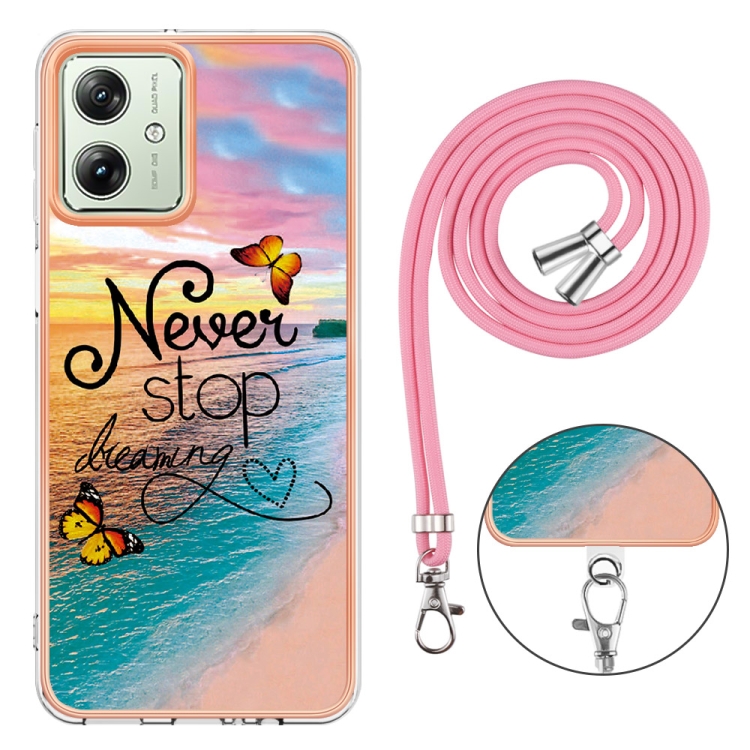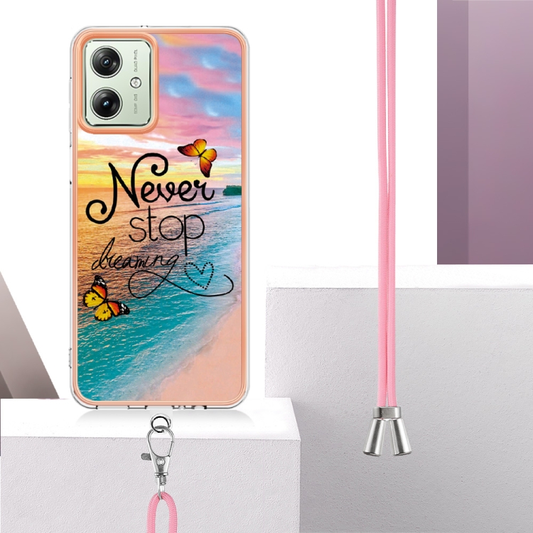 Estuche para Motorola Moto G54 TPU Imd con Galvanoplastia y Cordón (Mariposa de Ensueño)