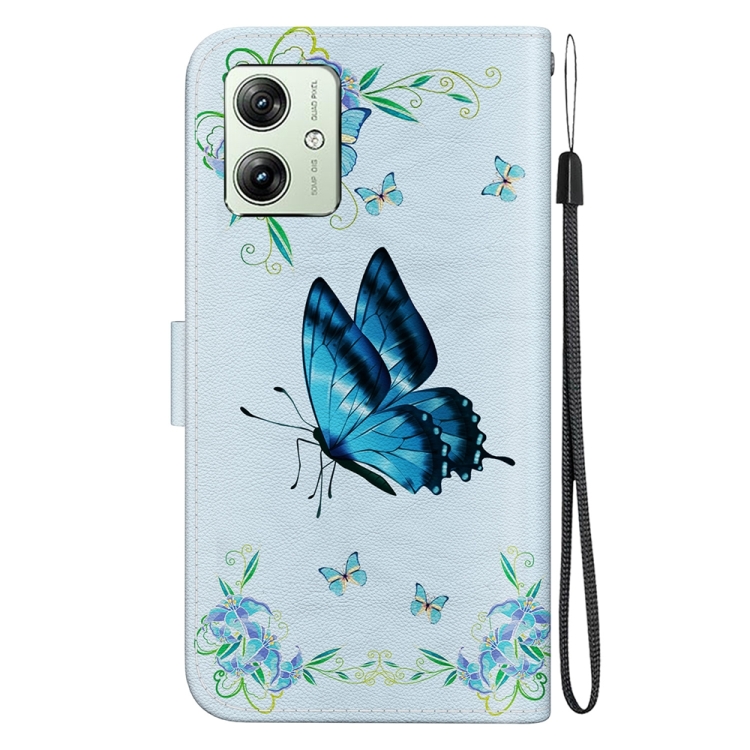 - 1x Funda de Cuero para Motorola Moto G54 con Dibujo Coloreado y Textura de Cristal (Pensamientos Azules)